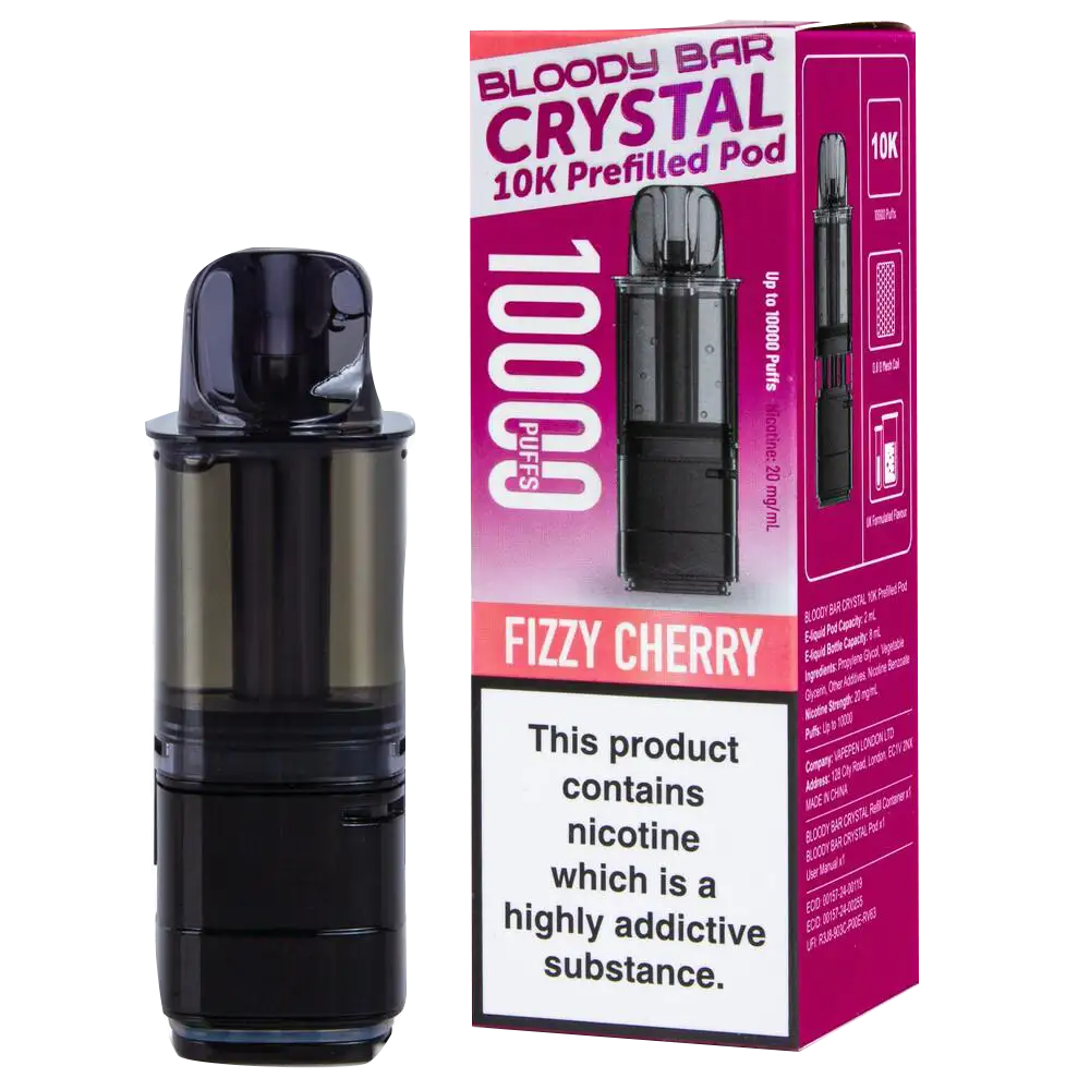 The Fizzy Cherry Bloody Bar Crystal 10K pods bring a sparkling soda vibe to your vaping setup, designed exclusively for the Bloody Bar Crystal 10K Vape Kit. This clever two-part system (2ml pod + 10ml tank) ensures you remain TPD compliant while enjoying a massive liquid capacity.