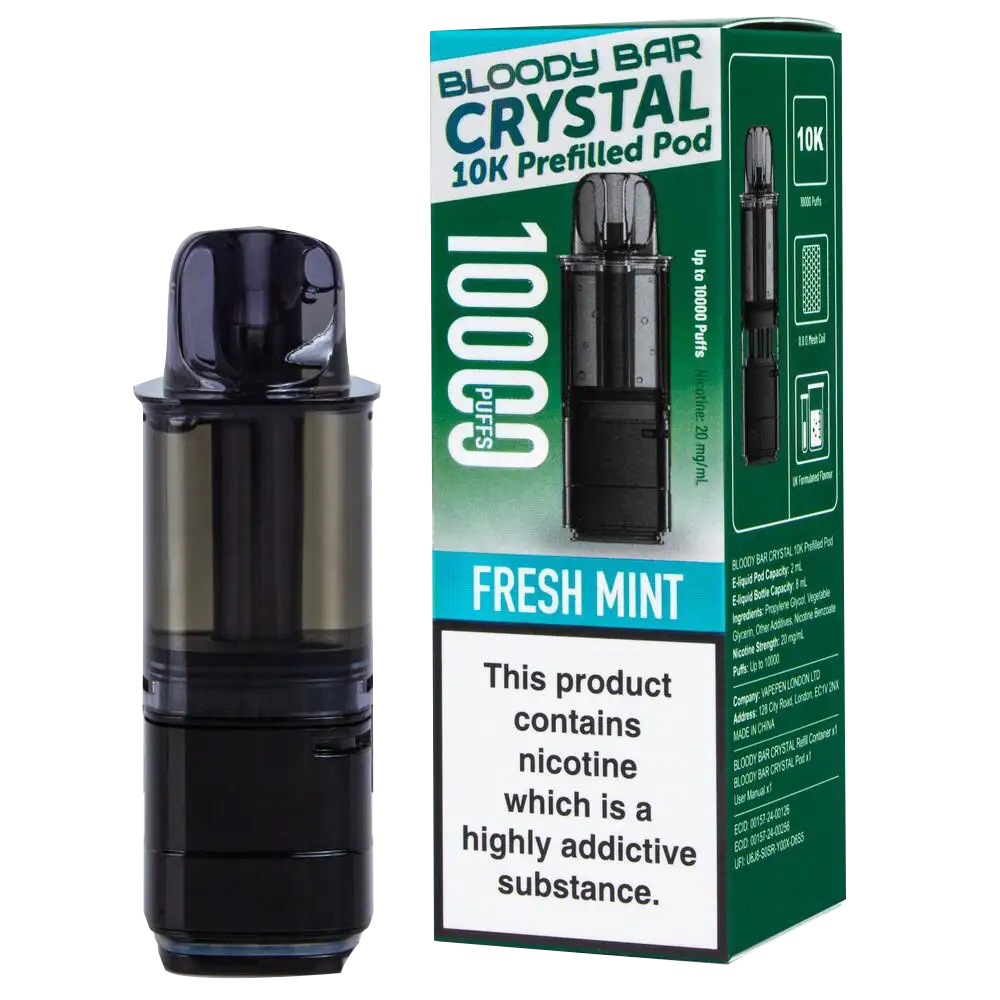 Fresh Mint is reliable and does exactly what it says on the tin. The Bloody Bar Crystal 10K hardware delivers a tight draw that pairs perfectly with this flavour profile. A solid workhorse pod.