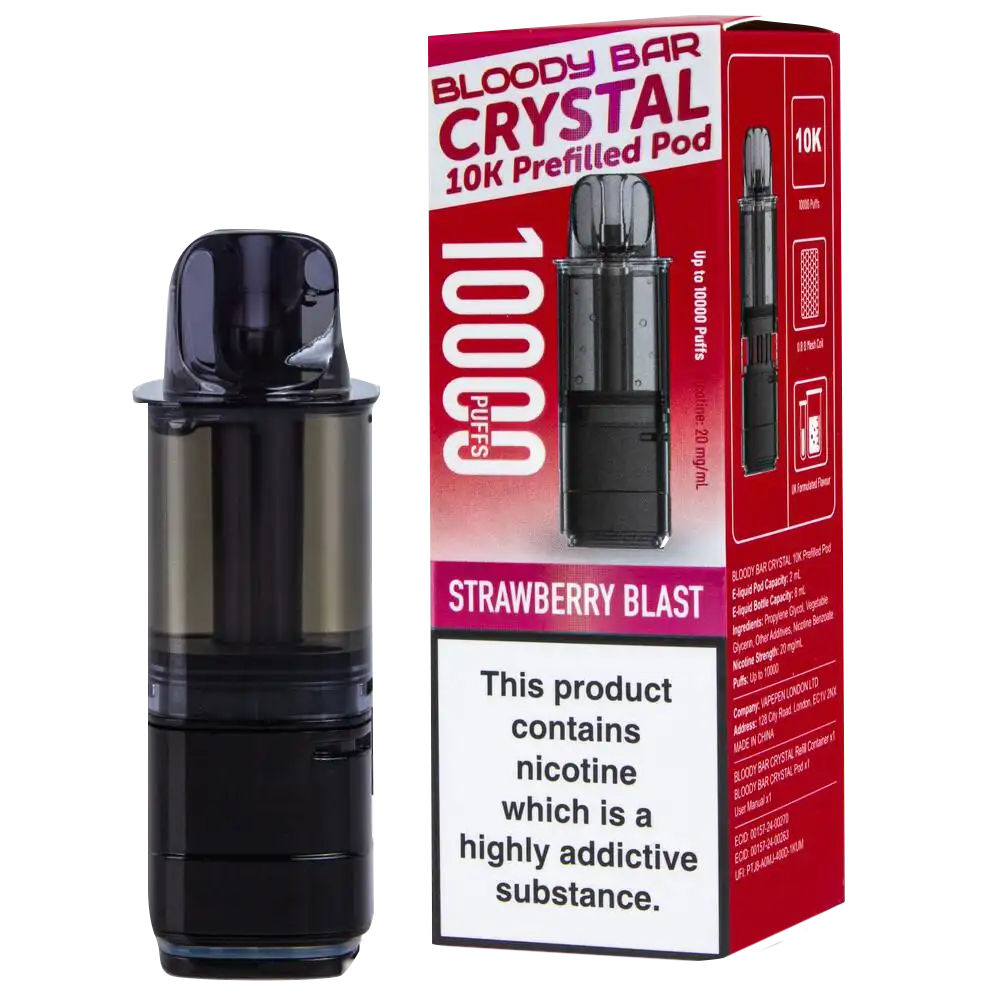 Strawberry Blast is a crowd-pleaser. The Bloody Bar Crystal 10K hardware ensures it doesn't leak or spit. If you want a no-nonsense fruit vape that lasts all week, this is it.
