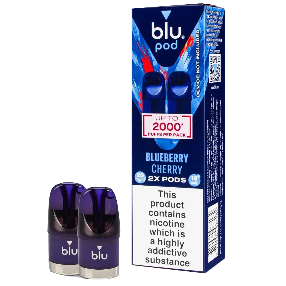 Blueberry Cherry Blu Bar prefilled pods blend the deep sweetness of blueberries with the tart punch of dark cherries. Each pod contains 2ml of 20mg nic salt e-liquid, ensuring a smooth throat hit. Compatible with the Blu Bar Pod Kit and Blu Box Pod Kit, the built-in mesh coil technology delivers a consistent and rich taste, perfect for fans of bold fruit combinations and MTL vaping.