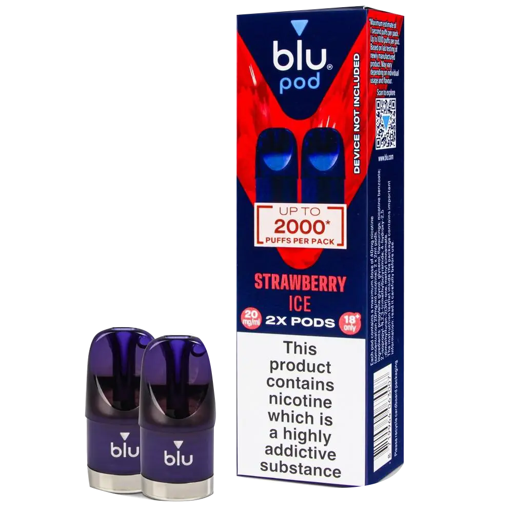 Strawberry Ice Blu Bar prefilled pods combine the sweetness of summer strawberries with a chilly menthol kick. Each TPD compliant 2ml pod features 20mg nic salt for a smooth throat hit. The built-in mesh coil ensures the strawberry flavour shines through the ice, making it a popular choice for MTL vaping with the Blu Bar Pod Kit.