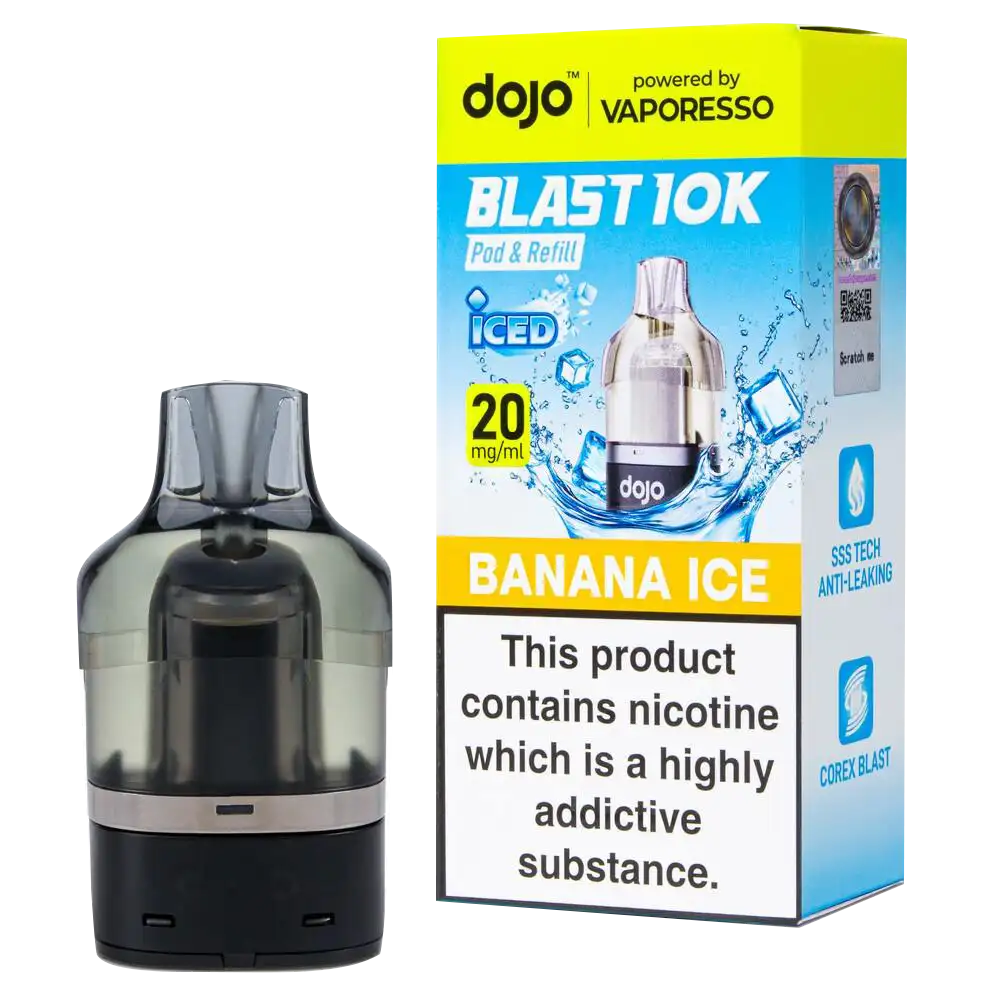 The Banana Ice Dojo Blast 10K refill pack is spot on for vapers who enjoy tropical fruit flavours with a cooling twist. The creamy banana taste stays consistent across the full 10,000 puffs, whilst the menthol exhale keeps it fresh without overpowering the fruit notes.