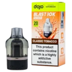 The Classic Tobacco Dojo Blast 10K pods deliver authentic tobacco flavour for MTL vaping. Designed for the Dojo Blast 10K Kit and Dojo Blast 30K Kit, these prefilled pods feature a 2ml TPD-compliant pod and 8ml auto-refill container providing up to 10,000 puffs. The Corex 2.0 mesh coil ensures smooth tobacco taste whilst SSS leak-resistant technology prevents mess. Each pack contains 20mg nic salt for a throat hit similar to traditional cigarettes.
