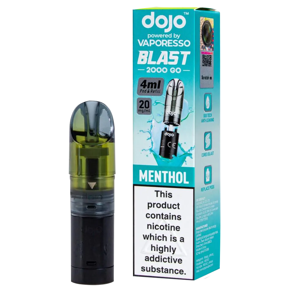 The Dojo Blast 2000 Go Menthol pods offer a straightforward option for vapers seeking pure menthol without added complexity. The profile provides a strong, icy menthol sensation with a solid throat hit that remains consistent throughout the life of the pod.