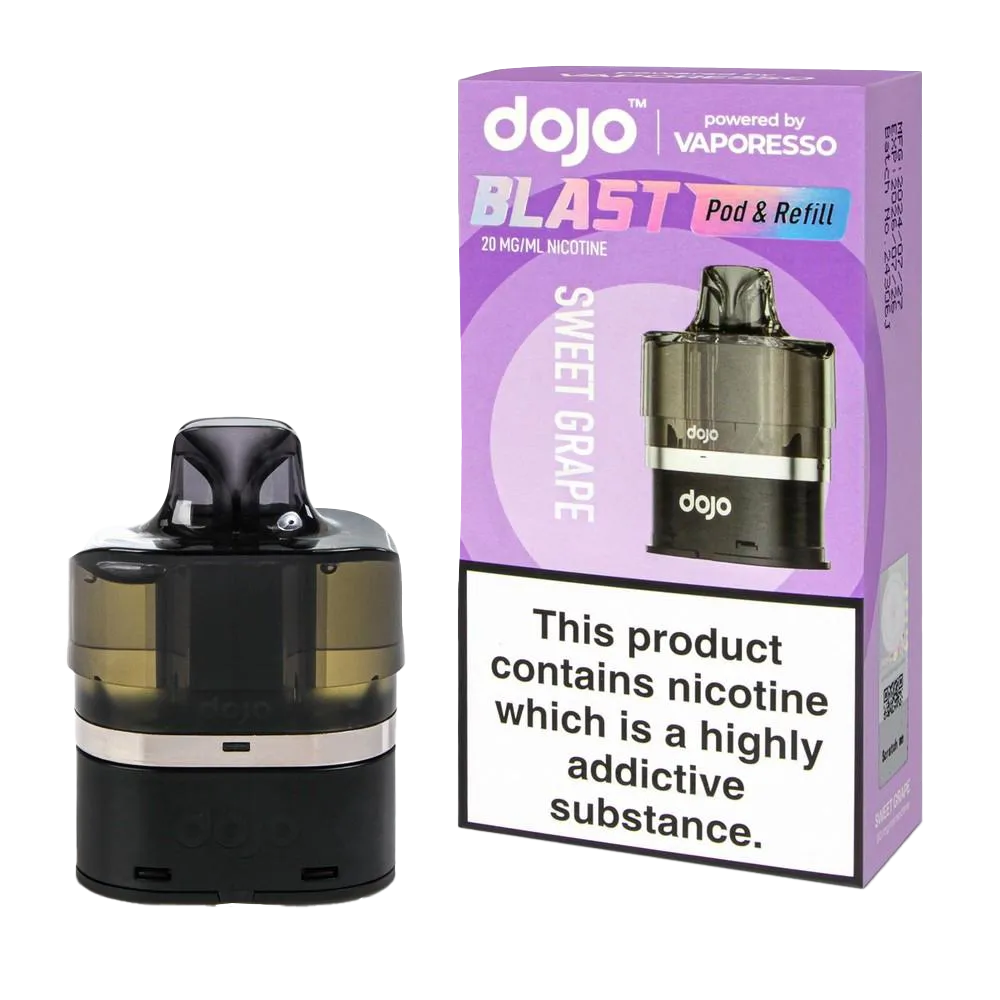 Sweet Grape Dojo Blast 6000 pods deliver a candy-style grape vape without the artificial aftertaste. This prefilled pod uses a Corex 2.0 mesh coil and 10ml refill container to provide up to 6000 puffs of bold grape flavour. Available in 20mg nic salt, it is designed for MTL vaping and ideal for vapers who want a sweet, nostalgic vape.
