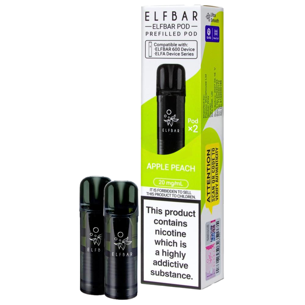 Elf Bar 600 Prefilled Pod Refills, 2 Pods Per Pack, 20mg Nic Salt, 600 Puffs Per Pod, QUAQ Mesh Coil