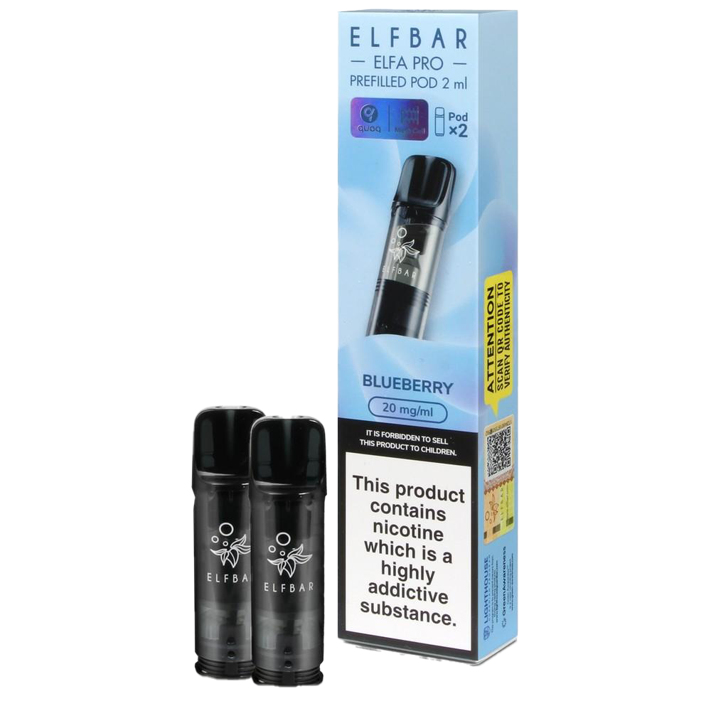 These prefilled pods deliver a sweet blueberry vape for the Elfa Pro and Elfa kits. Each 2ml TPD compliant pod contains 20mg nic salt e-liquid, providing around 600 puffs. Compatible with Elf Bar Elfa Pro, Elfa, Elf Bar 600, and Elfa Turbo devices, they connect magnetically in seconds. The QUAQ mesh coil maintains the blueberry sweetness consistently without fading.