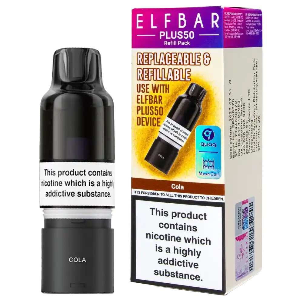 Cola Elf Bar Plus 50 pods suit vapers who enjoy distinctive, non-fruity flavours with familiar taste profiles. The cola blend stays punchy and sweet across the full 5,500-puff lifespan, and the auto-refill mechanism removes the learning curve that puts off newcomers to refillable pods. Decent choice for MTL users switching from disposables who want something different from standard fruit or menthol options.