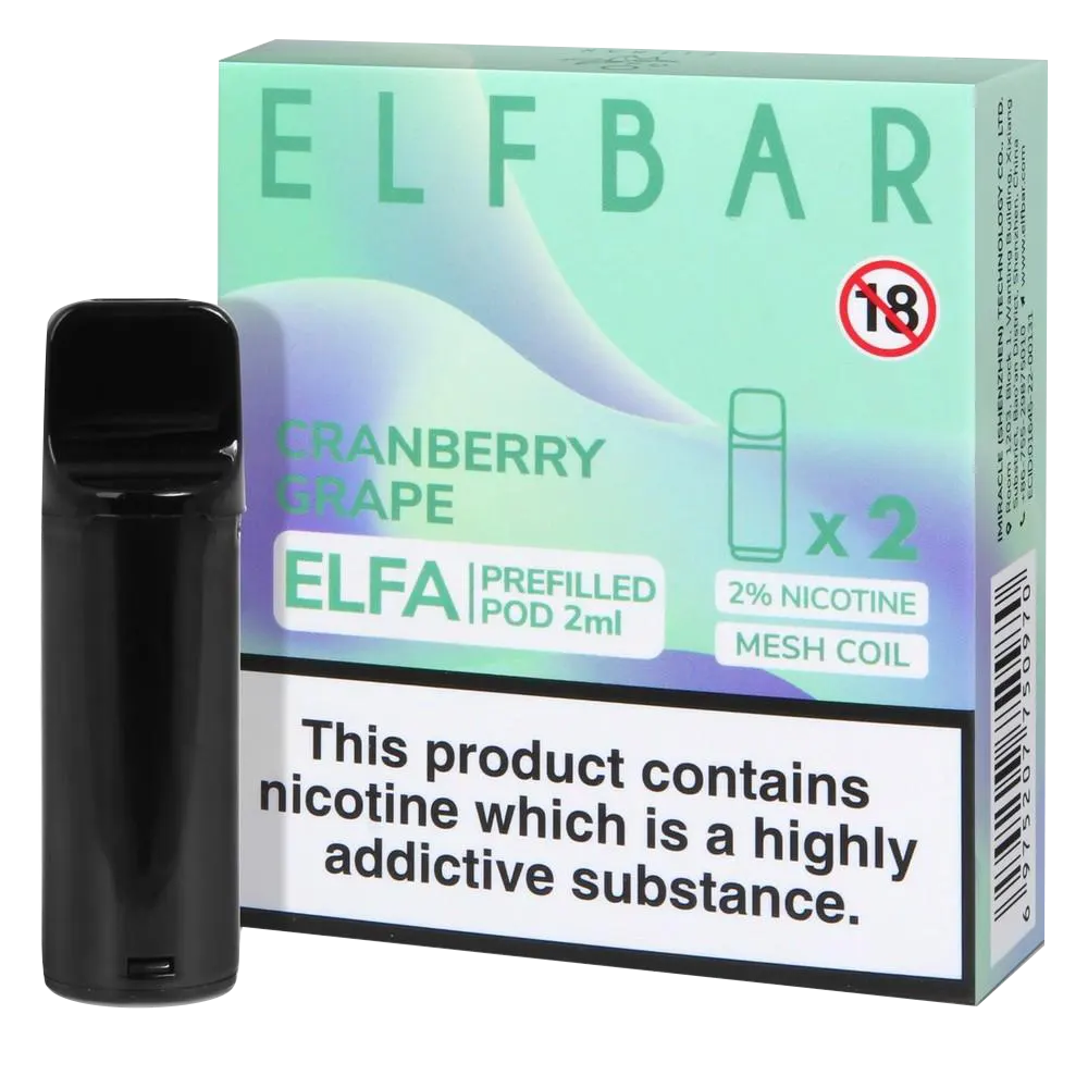 The Cranberry Grape Elfa pods keep things simple: sweet grape on the inhale, followed by a sharper cranberry twist that stops it feeling overly sweet. There\'s no icy blast here, just a clean fruit mix that\'s easy to stick with. Each pod comes prefilled with 20mg nic salt, so you get quick craving relief with a smooth, cigarette-style MTL vape feel—no refilling, no coil swapping, no hassle.