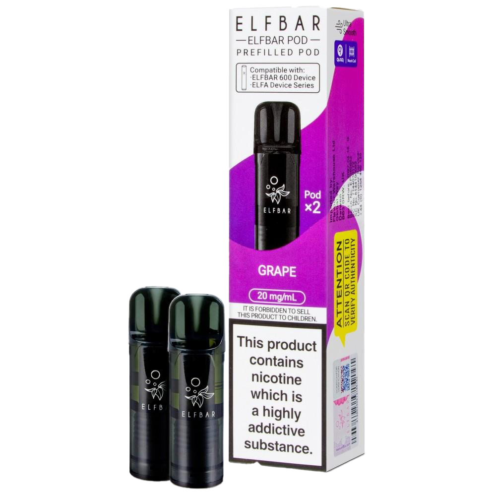 Elf Bar 600 Prefilled Pod Refills, 2 Pods Per Pack, 20mg Nic Salt, 600 Puffs Per Pod, QUAQ Mesh Coil