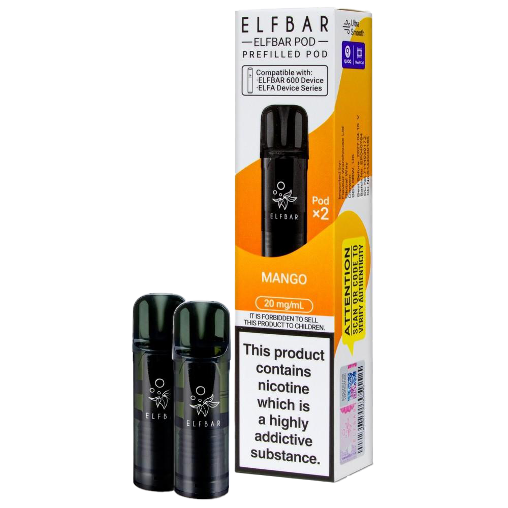 Elf Bar 600 Prefilled Pod Refills, 2 Pods Per Pack, 20mg Nic Salt, 600 Puffs Per Pod, QUAQ Mesh Coil
