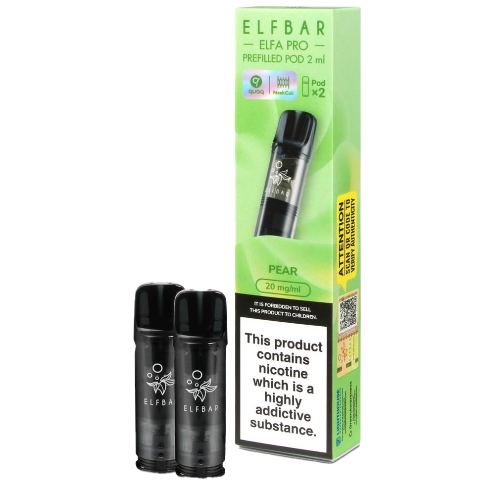 These prefilled pods deliver a simple pear vape for the Elfa Pro and Elfa systems. Each 2ml pod holds 20mg nic salt e-liquid, delivering up to 600 puffs. Compatible with Elf Bar Elfa Pro, Elfa, Elf Bar 600, Lost Mary Tappo, and Elfa Turbo kits, they attach magnetically. The QUAQ mesh coil ensures the soft, juicy pear flavour stays consistent.