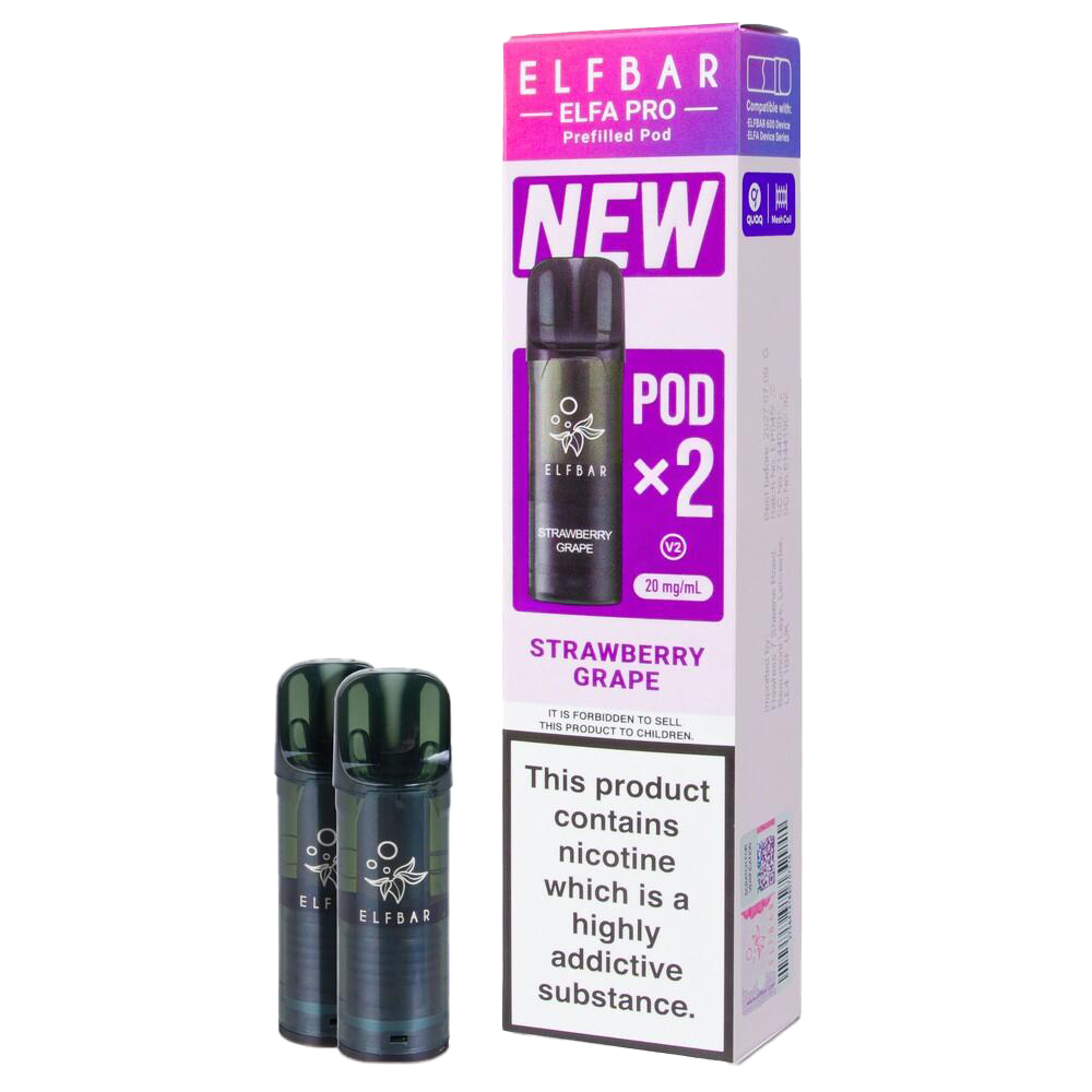 These prefilled pods fuse strawberry with grape for the Elfa Pro and Elfa kits. Each 2ml TPD compliant pod contains 20mg nic salt e-liquid, providing around 600 puffs. Compatible with Elf Bar Elfa Pro, Elfa, Elf Bar 600, Lost Mary Tappo, and Elfa Turbo devices, they fit magnetically. The QUAQ mesh coil maintains the strawberry juiciness and rich grape combination consistently.