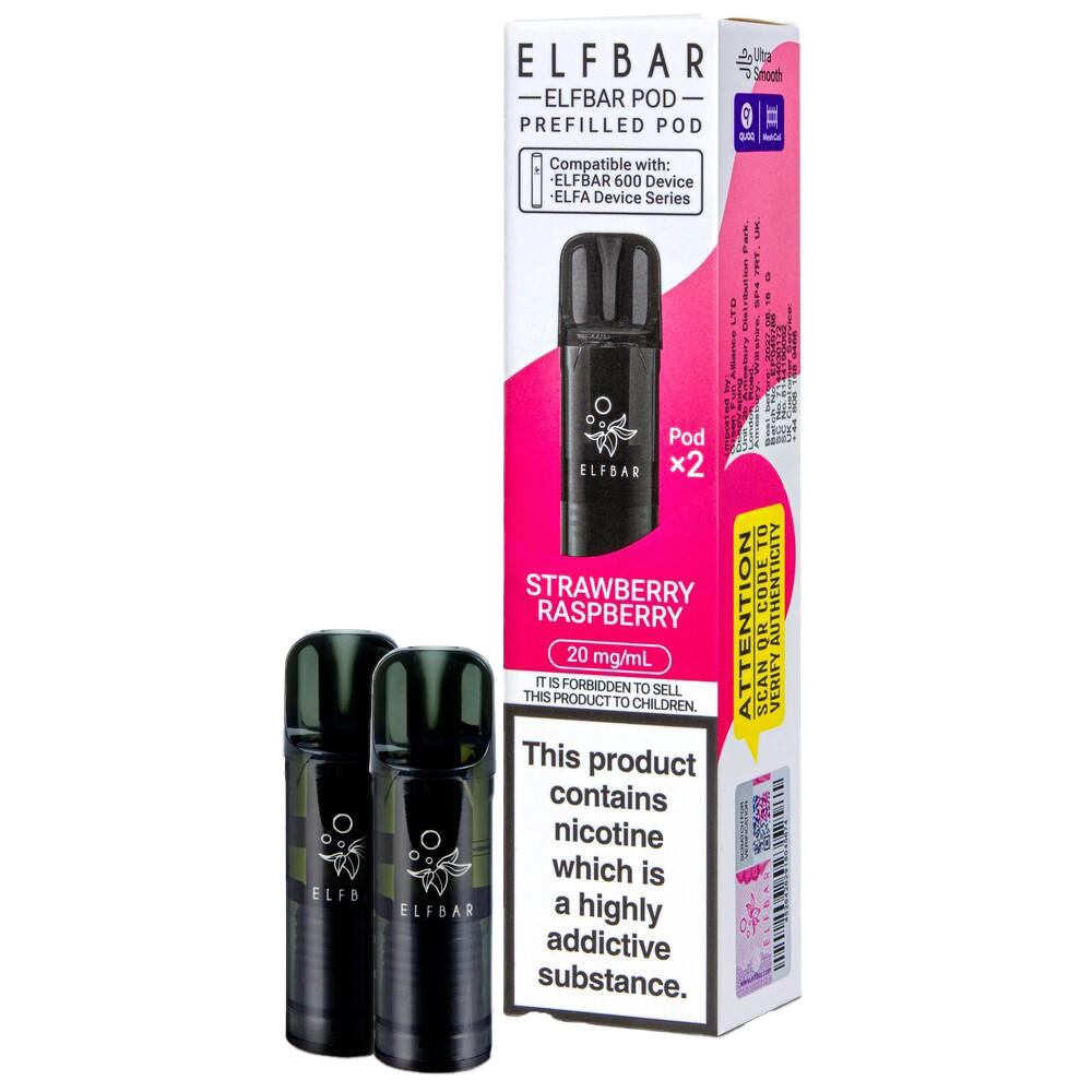 Elf Bar 600 Prefilled Pod Refills, 2 Pods Per Pack, 20mg Nic Salt, 600 Puffs Per Pod, QUAQ Mesh Coil