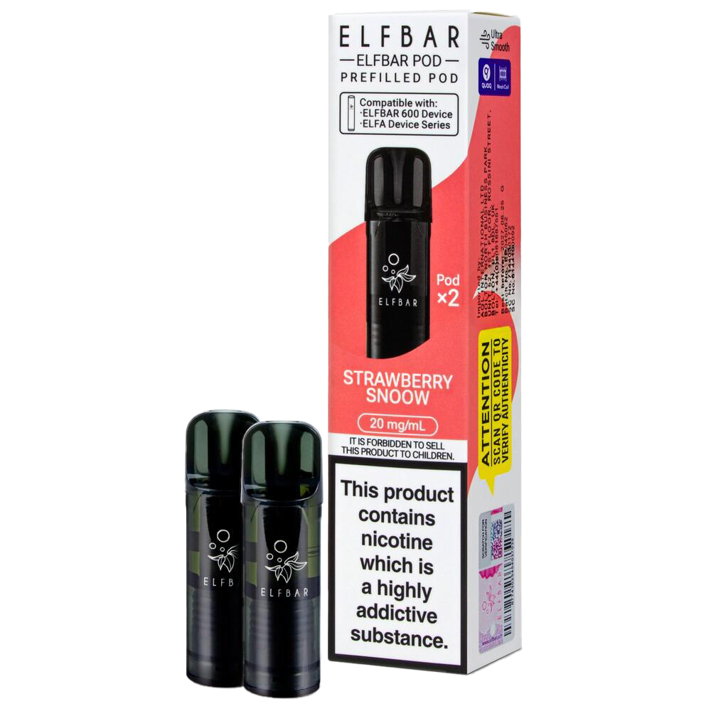 Elf Bar 600 Prefilled Pod Refills, 2 Pods Per Pack, 20mg Nic Salt, 600 Puffs Per Pod, QUAQ Mesh Coil
