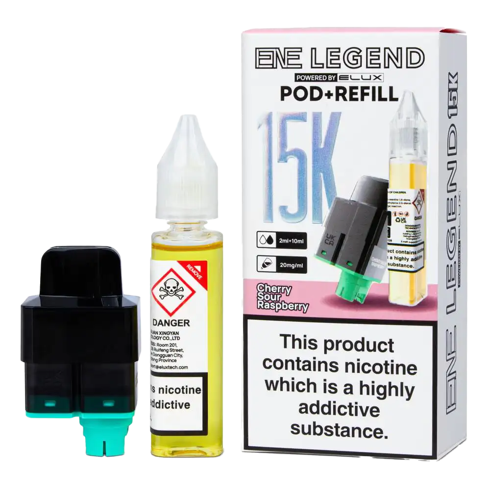 A vibrant mix that wakes up your taste buds. This pod combines the darker notes of cherry with the bright zing of sour raspberry. Engineered for the Elux ENE Legend 15K Kit, it offers a consistent draw thanks to the advanced mesh coil. The 12ml total capacity ensures you aren't constantly swapping pods, and the 20mg salt nicotine delivers nicotine efficiently. These prefilled pods are the perfect solution for vapers seeking bold flavour and extreme longevity.