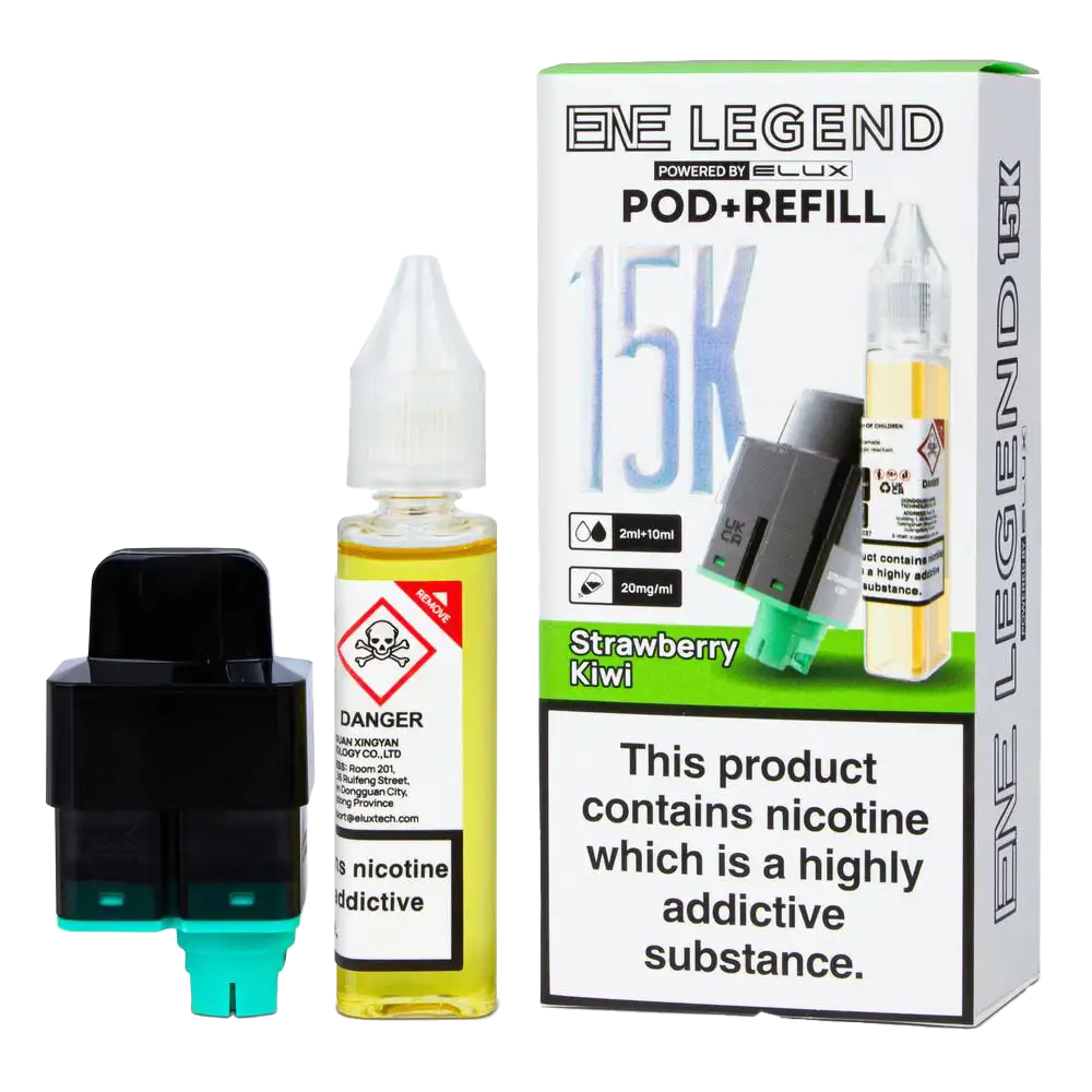A vaping classic, Strawberry Kiwi combines sweet garden strawberries with exotic, tangy kiwi. This pod for the Elux ENE Legend 15K Kit is a masterclass in balance. The 12ml capacity ensures you have plenty of this popular blend. The 20mg nic salt is smooth, and the mesh coil ensures the kiwi adds a nice zing to the soft strawberry base.