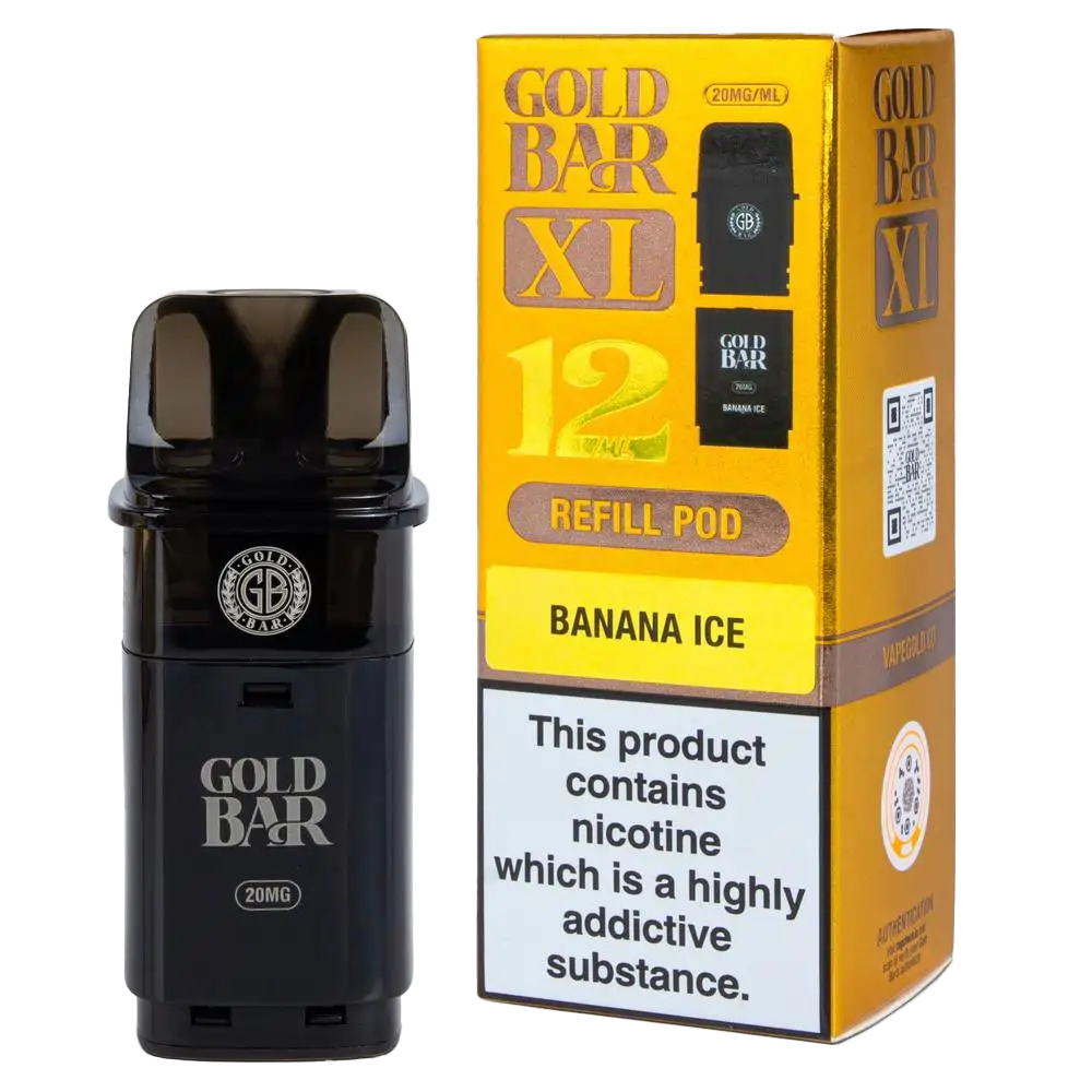 The Banana Ice Gold Bar XL refill pack brings a creamy, ripe banana profile with a sharp icy finish, ideal for vapers needing a refreshing kick. Made for the Gold Bar XL Vape Kit, this unit slots in easily and provides instant satisfaction. The 20mg salt nicotine ensures the nicotine delivery is quick and smooth, mimicking the sensation of smoking.