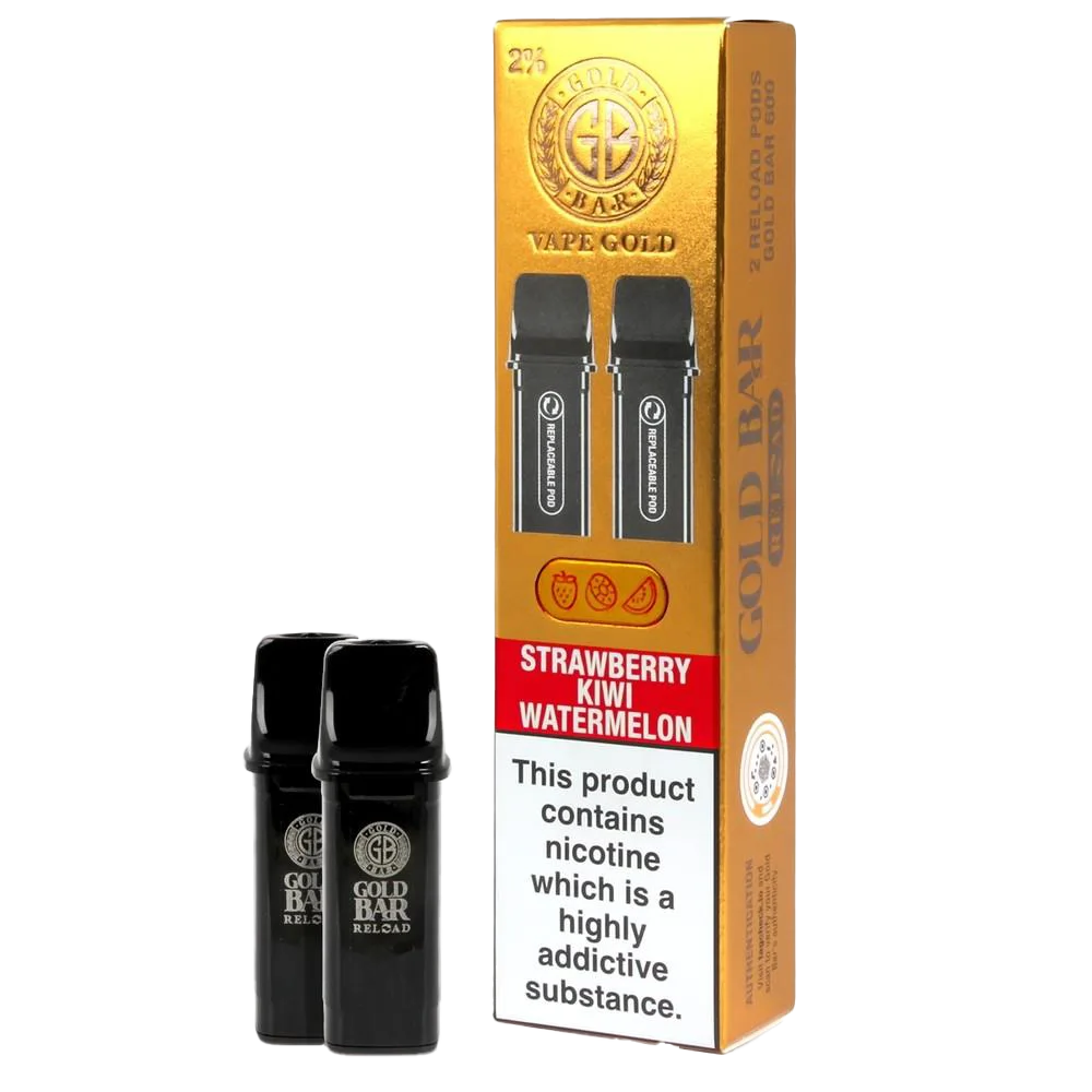 Strawberry Kiwi Watermelon is a trifecta of fruit flavours. These prefilled pods for the Gold Bar Reload offer a layered vape that hits all the right notes: sweet, tart, and juicy. Using this disposable alternative, you get a consistent delivery of this complex mix. The 20mg salt nicotine ensures that the nicotine delivery is as satisfying as the flavour, mimicking the quick absorption of a cigarette.
