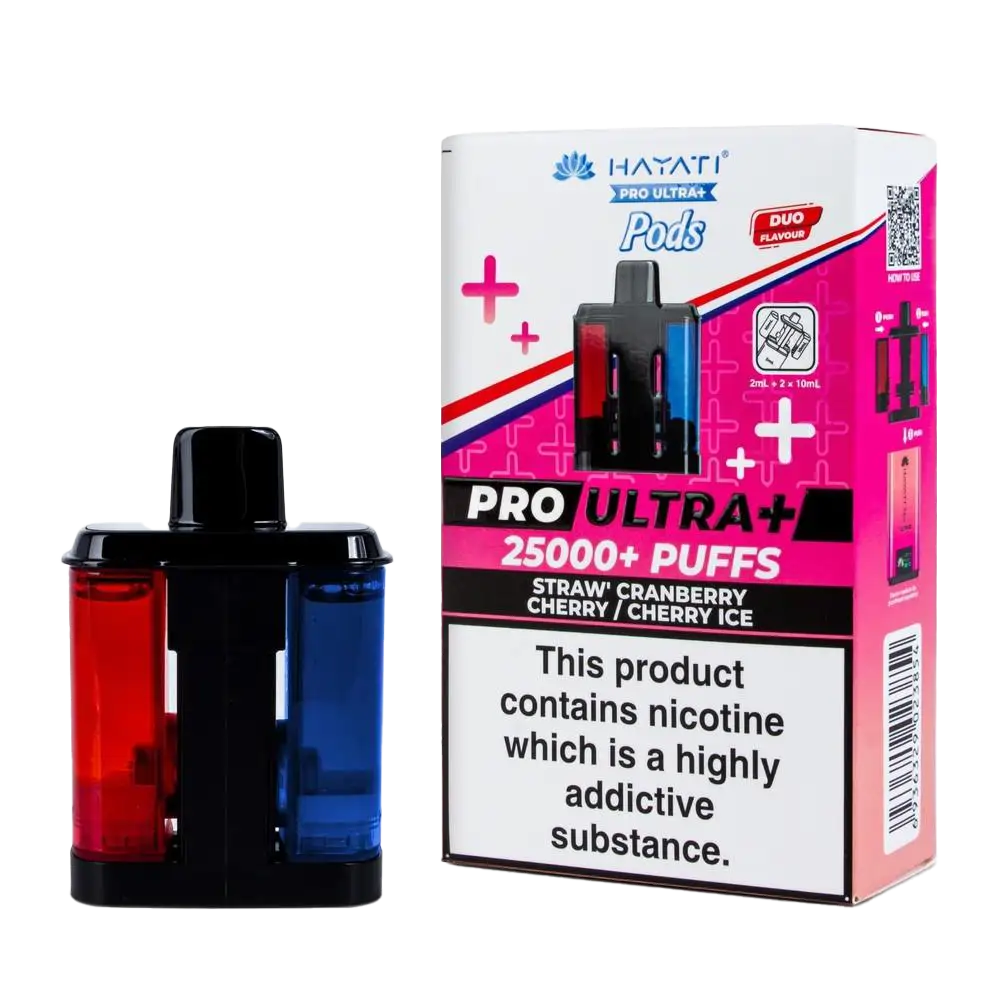 This Dual-Flavour pack is a red fruit lover's dream. One pod contains a complex Strawberry Cranberry Cherry mix, while the other offers a punchy Cherry Ice. You get 22ml of 20mg nic salt e-liquid total. Designed for the Hayati Pro Ultra Plus, this set allows you to toggle between a layered berry trio and a cooling cherry blast. The dual mesh coils ensure each specific profile remains distinct and vibrant for up to 25,000 puffs.