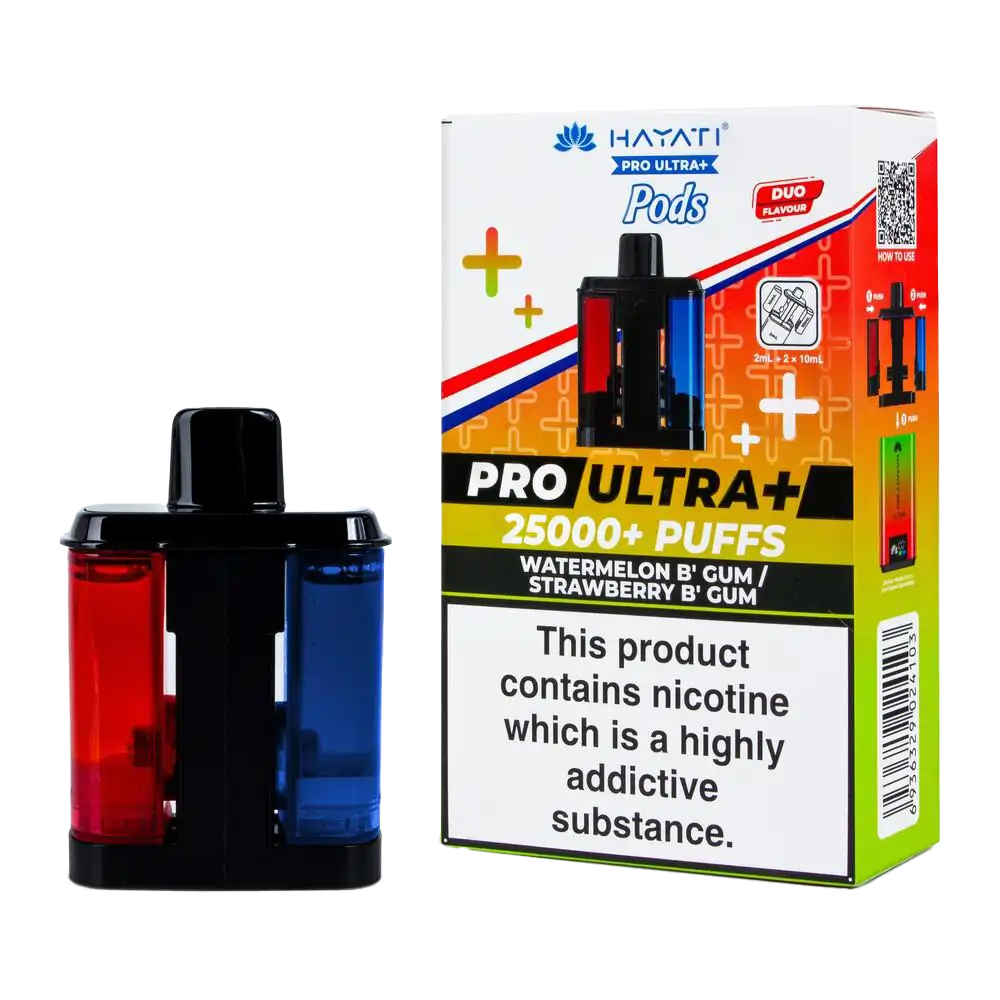 Double the bubblegum fun with this Dual-Flavour pack. One side is Watermelon Bubblegum, the other is Strawberry Bubblegum. Designed for the Hayati Pro Ultra Plus, this set delivers 22ml of 20mg nic salt in a nostalgic package. Both flavours offer that distinct, sugary bubblegum base with different fruit top notes. The dual mesh coils ensure the flavour stays "chewy" and rich for up to 25,000 puffs.
