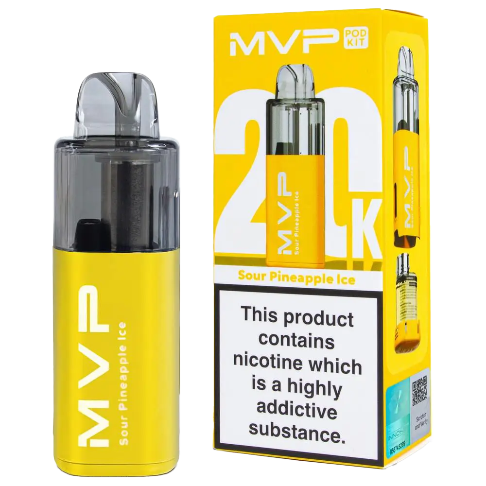 Sour Pineapple Ice MVP 20K pods add tart twist to tropical pineapple, finished with cooling menthol. Designed for the Innokin MVP 60K kit, these prefilled pods provide 2ml capacity plus 10ml refill for roughly 20,000 puffs total. The dual mesh coil balances pineapple's natural sweetness against added sourness and ice, creating layered profile that evolves across each puff. 20mg nic salt formulation delivers smooth nicotine absorption despite the complex flavour elements.