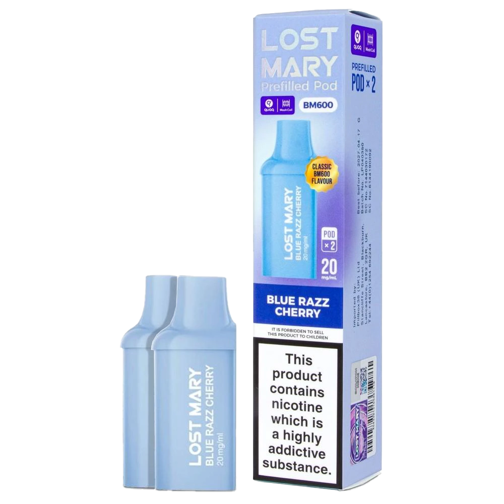 Lost Mary BM600 Blue Razz Cherry prefilled pods offer a bold, non-icy candy blend with 20mg salt nicotine and QUAQ mesh coils for an intense MTL experience.