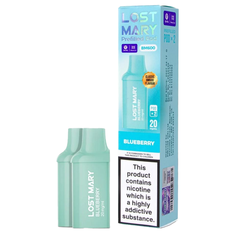 Lost Mary BM600 Blueberry prefilled pods deliver a clean, non-icy berry flavour with 20mg salt nicotine and QUAQ mesh coils for a smooth, consistent MTL vape.
