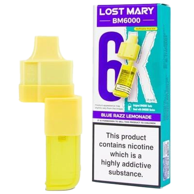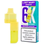 Lost Mary BM6000 prefilled pods combine a 2ml pod and 10ml refill for 6000 puffs, featuring 20mg nic salt and dual mesh coils for a tangy blue razz lemonade MTL vape.