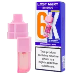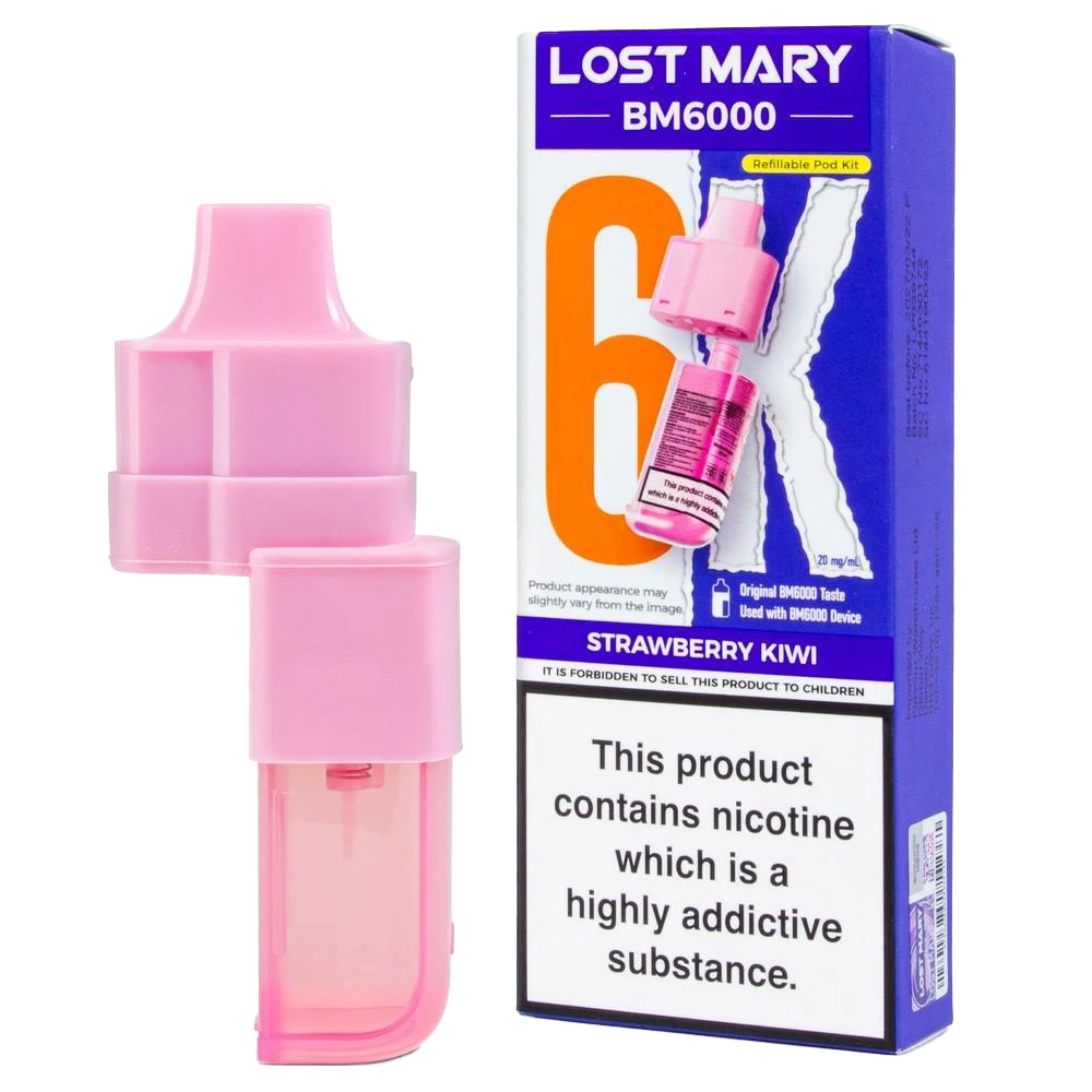 Lost Mary BM6000 prefilled pods combine a 2ml pod and 10ml refill for 6000 puffs, featuring 20mg nic salt and dual mesh coils for a classic strawberry kiwi MTL vape.