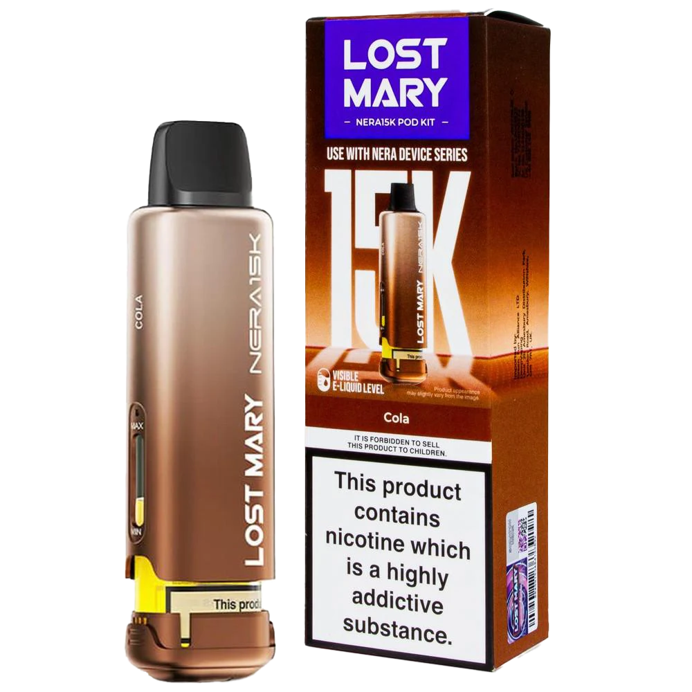 Cola brings fizzy drink flavour to Lost Mary Nera pods for vapers wanting alternatives to fruit and menthol. The refill pack includes a 2ml TPD-compliant pod and 10ml auto-refill container filled with 20mg nicotine salt. Slots magnetically into Nera 30K Fullview, Pureview, and 15K devices without fiddly connections. The built-in mesh coil captures cola's spice notes and sweetness without that flat, syrupy taste cheaper cola vapes suffer from. Delivers MTL draws tight enough for ex-smokers whilst staying legal with TPD-compliant capacity. At 12ml total, you're looking at roughly 15,000 puffs—about 11-14 days for moderate vapers.