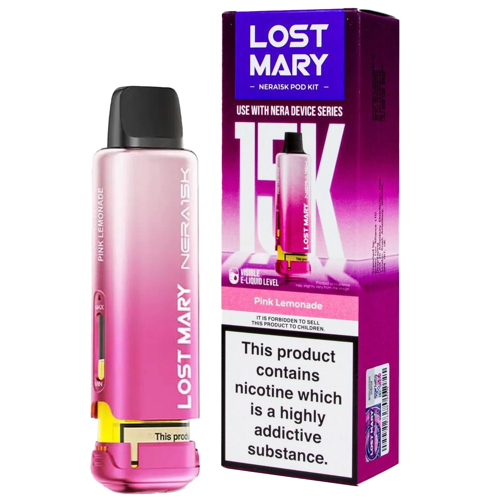 Pink Lemonade Lost Mary Nera refills provide a high-capacity, 15,000-puff experience by combining a 2ml mesh-coil pod with a 10ml auto-refill container, delivering a balanced tart lemon and berry nicotine salt flavor in a leak-resistant, magnetic system.