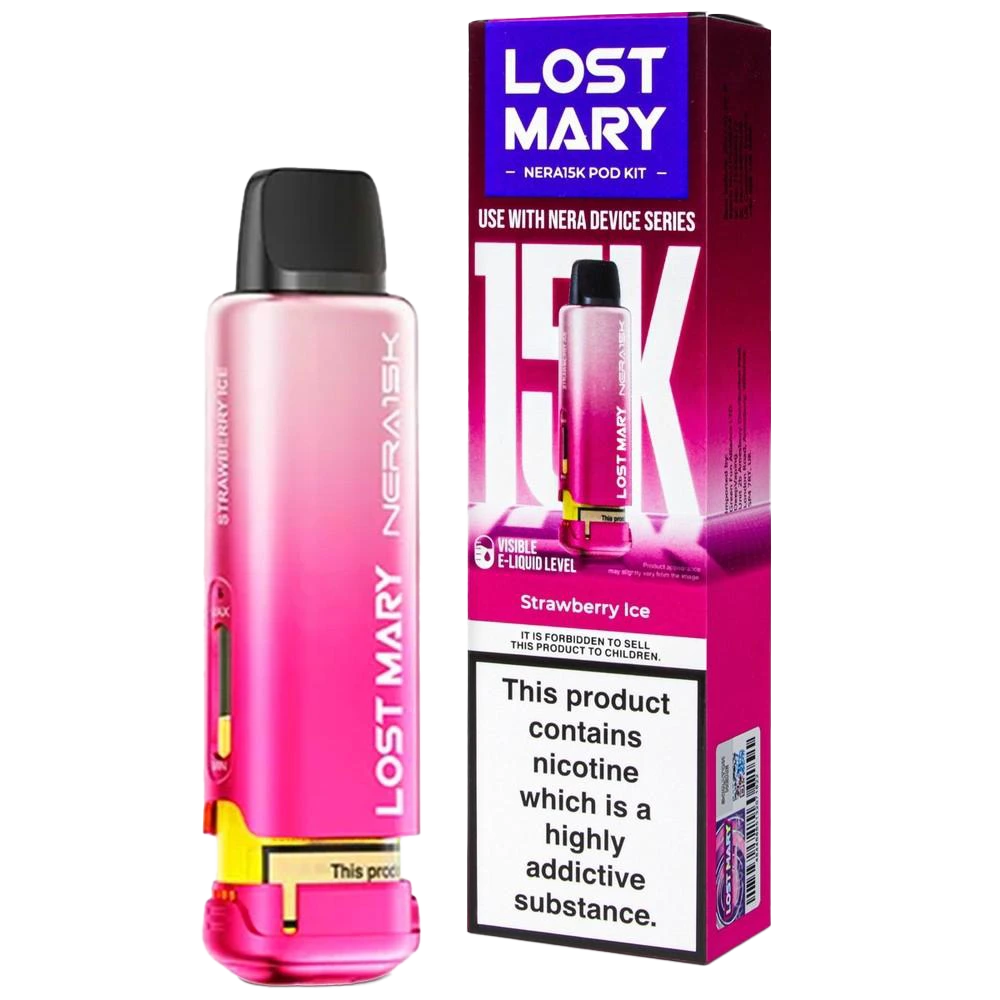 Lost Mary Nera Strawberry Ice Pods, 2ml Pod + 10ml Auto-Refill, 20mg Nic Salt, 15,000 Puffs Per Pack, Mesh Coil for Consistent Flavour and Smooth Cooling.
