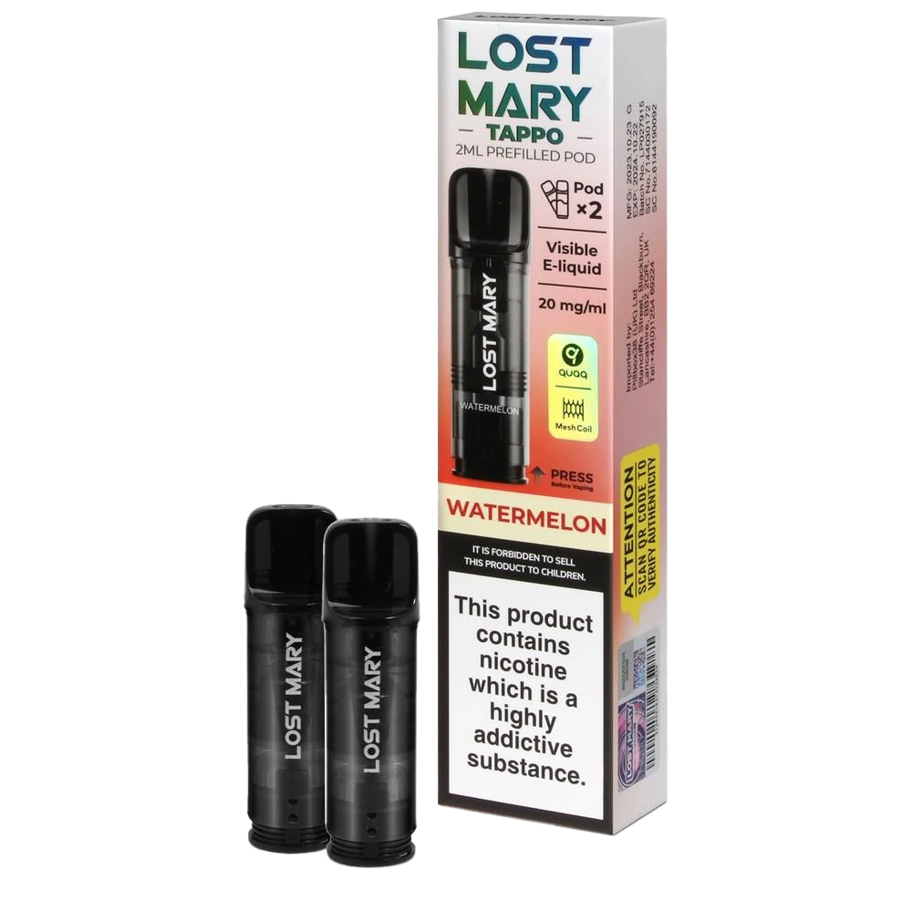 Lost Mary Tappo pods in Watermelon are made for the Lost Mary Tappo Pod Kit and are a clean, easy fruit flavour for daily use. It\'s a common recommendation for people who want something smooth that doesn\'t taste like sweets or fizzy drinks.