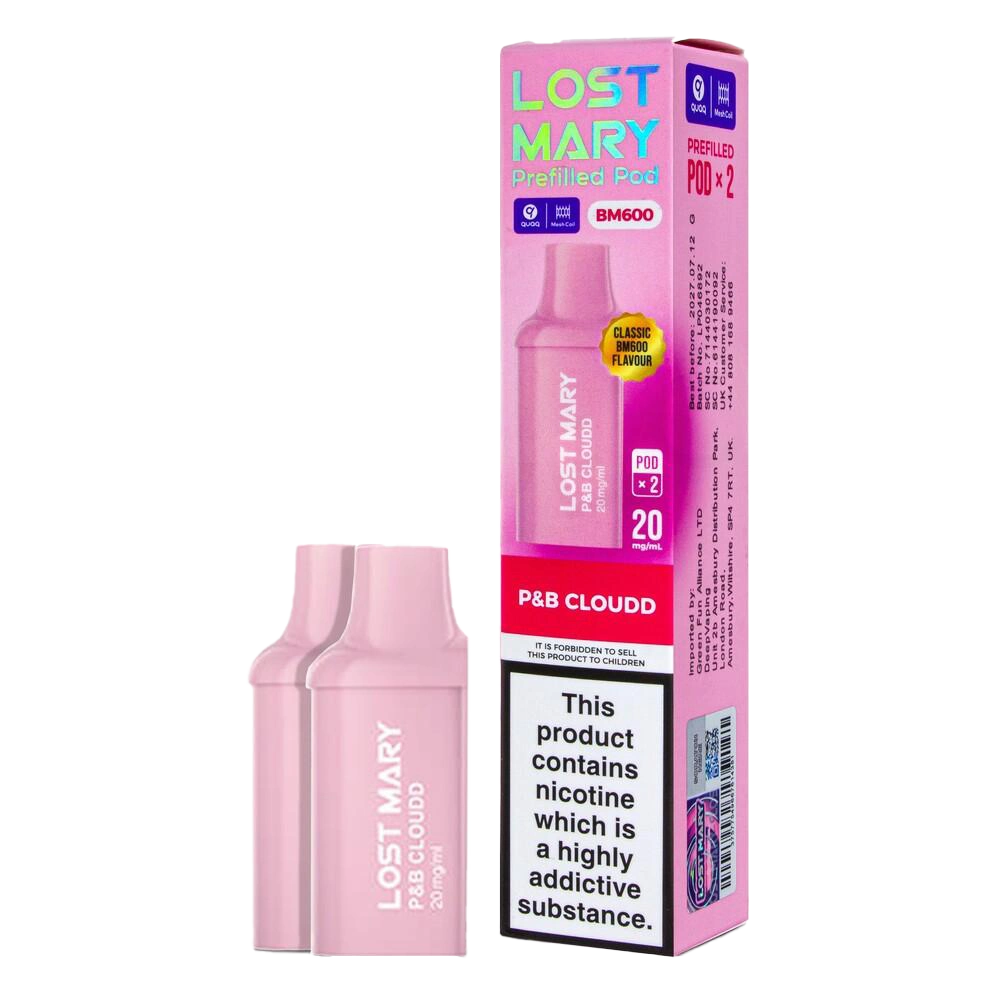 Lost Mary BM600 prefilled pods offer a unique peanut butter and banana dessert blend, featuring 2ml of 20mg nic salt and a QUAQ mesh coil for rich MTL vaping.